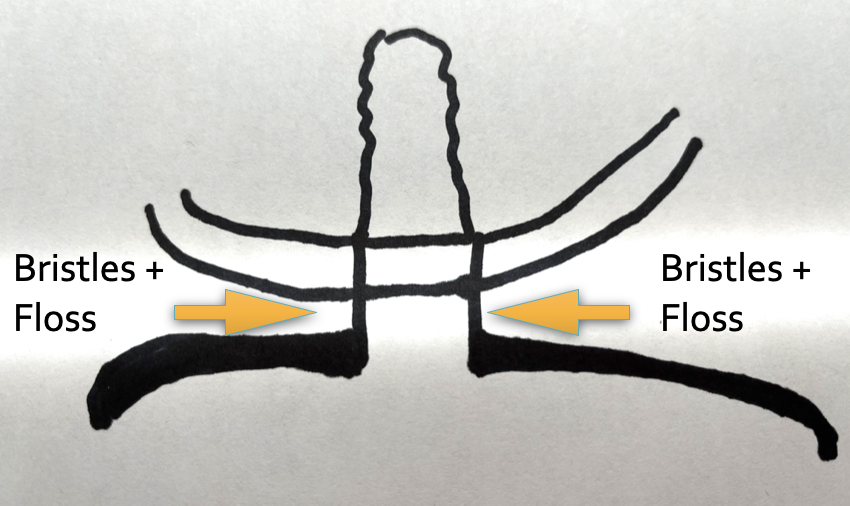 Commonly available oral hygiene devices include manual and mechanical toothbrushes, irrigation devices, dental floss with threaders and proxi-brushes. To be affective, all devices must have access to reach the prosthetic-implant interface to remove the oral biofilm. Rotary mechanical brushes may not reach the interface as well as straight bristles that can be directed to the interface. In areas difficult to reach, especially in multi-unit posterior restorations, 2 mm relief of the intaglio surface from the soft tissue provides improved access for toothbrush contact for plaque removal (Figure 17 and Figure 18). Water Flossers or Air Flossers without toothbrushing does not adequately remove oral biofilm.21,22 Dental floss with threaders when used properly are effective in disrupting the oral biofilm if the intaglio surface is convex and the patient has the necessary manual dexterity to thread the floss into those areas.