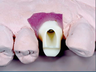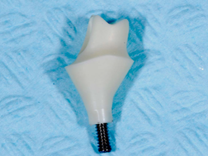 Individual anterior custom abutments should have straight or concave transmucosal profiles extending to the desired gingival line at the FMG (Figure 29 through Figure 35).