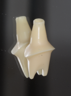 Following the recommendations of Yi, the transmucosal portion of the prosthetic connections should be flat or concave in profile diverging no more that 30 degrees from the long axis of the implants.19 Standard abutment profiles which are flat or convex in profiles are good examples to follow (Figure 19). Following Yi's recommendations individual posterior custom abutments with narrow implants should have flat or concave transmucosal profiles like a standard implant abutment with convex intaglio shapes like pontics that are cleanable with dental floss19 (Figure 20 through Figure 28).