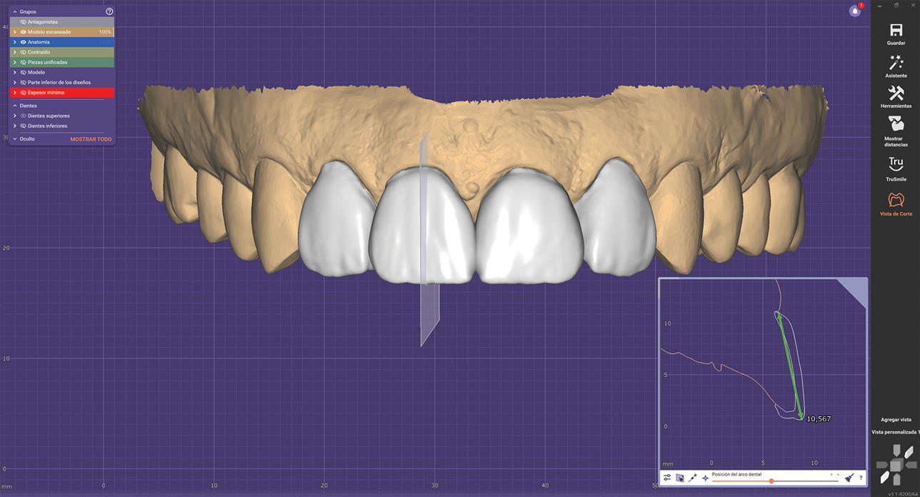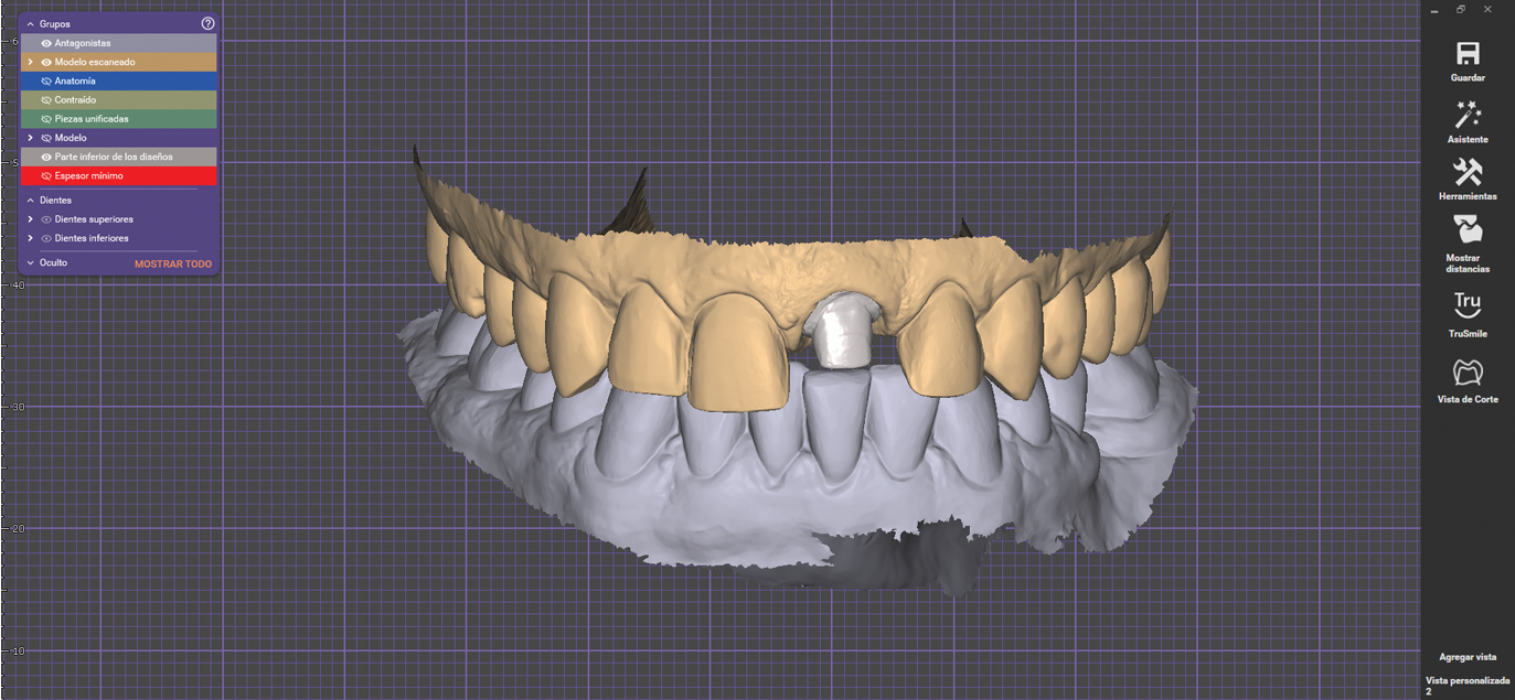 For this case, a model was printed from a 3D digital wax-up to fabricate an intraoral direct mock-up with a silicone index and bis-acryl material, which also served as a guide for tooth preparation. After analyzing the mock-up and making minor esthetic adjustments, a digital impression was captured to facilitate the future design of the final restorations.