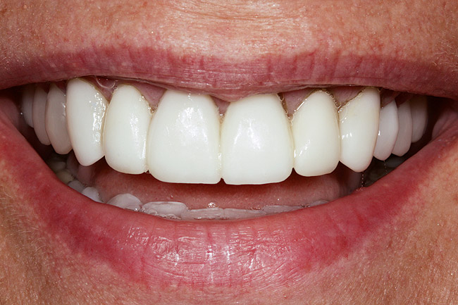 This case illustrates the suitability of the IPS e.max layered version of crown restorations for customizing the shape and shade for this particular patient. Despite its monolithic character, the staining technique nevertheless enabled the use of one pressed color to obtain a natural look that blended in well with natural adjacent teeth (Figure 18). Proper ingot selection and precise knowledge of what tooth structure was being worked on to ensure exact color blending with the tooth’s substructure was instrumental in the successful outcome. The patient, whose career often requires on-stage appearances, was highly pleased with the outcome—a healthy, natural- and youthful-looking, bright smile that “popped” and exuded powerful confidence (Figure 19 and Figure 20).