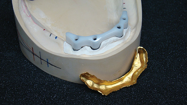 Following an in-depth clinical and radiological examination, four Camlog implants (Camlog USA, www.camlogus.com) had been placed in the patient’s mandible for a bar construction.