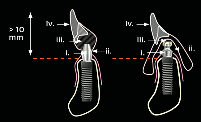 The interocclusal (restorative) dimension directly impacts the quality and integrity of both an IRO and an ISFP. Both overdentures and fixed prostheses require a minimal dimension to provide structural integrity and to permit the establishment of proper contours in support of comfort, mastication, and speech.
