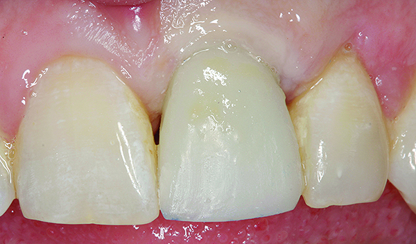 Restorative responsibilities unique to this scenario revolve around the provisionals. Depending on the amount and the nature of the grafting, a different provisional will be indicated. If multiple surgeries are necessary to augment the surrounding tissues, bonded type bridges become maintenance liabilities. A fixed conventional provisional is ideal if the adjacent teeth need to be restored. A variety of removable prostheses would also work—including a flipper, an Essex retainer with a denture tooth, and a snap-on appliance such as Snap-On Smile® (DenMat Holdings, LLC, www.denmat.com), to name several.