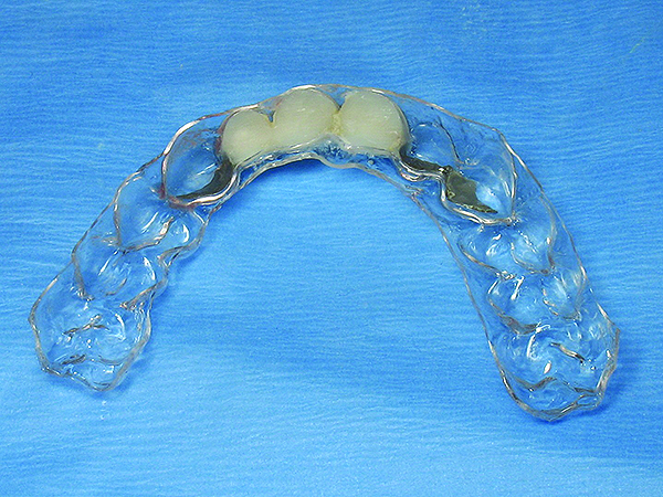 One technique for fabricating an immediate provisional restoration involves a vacuum-formed matrix and the extracted tooth. This works best if the restorative dentist will not be seeing the patient the same day the implants are placed. The extracted tooth is sectioned based on the measurement from the fixture head to the incisal edge of the adjacent tooth. The coronal portion of the tooth is then glued into the vacuum-formed matrix, and the emerging root form is used to maintain soft-tissue positioning after implant placement (Figure 1).