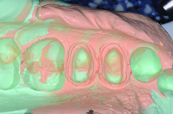 Moreover, by using a powder-free scannable impression material, the dentist–author makes it possible for her laboratory partner Gold Dust Dental Lab to eliminate a step in fabrication and hence removes at least one opportunity for inaccuracy. If she used a conventional impression material and sent the impression to the laboratory, the technicians could either pour their own molds using a scannable impression materials and then scan them, or apply powder to the dentist’s impression so it will reflect light and allow the scanner to read the digital data. Both of these options introduce the opportunity for inaccuracy, take extra time for the technician, and increase materials costs for the laboratory. Another downside with the second option is that the powder adds mass to the impression and, hence, introduces more inaccuracy to the process (Figure 3 and Figure 4). By utilizing a powder-free scannable VPS material and digitizing the impression upfront, the dentist and laboratory can efficiently and affordably provide patients with more precisely fitting prostheses.