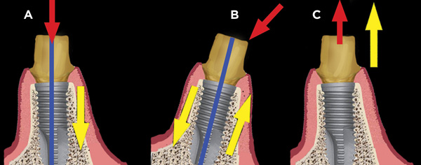 When discussing implant loading, it is important to understand the three types of forces being placed intraorally on the implant, which are compressive, shear, and tensile1 (Figure 1).