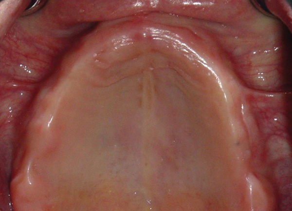 Fig 5. Maxillary arch with shallow palatal vault but adequate vestibular depth.