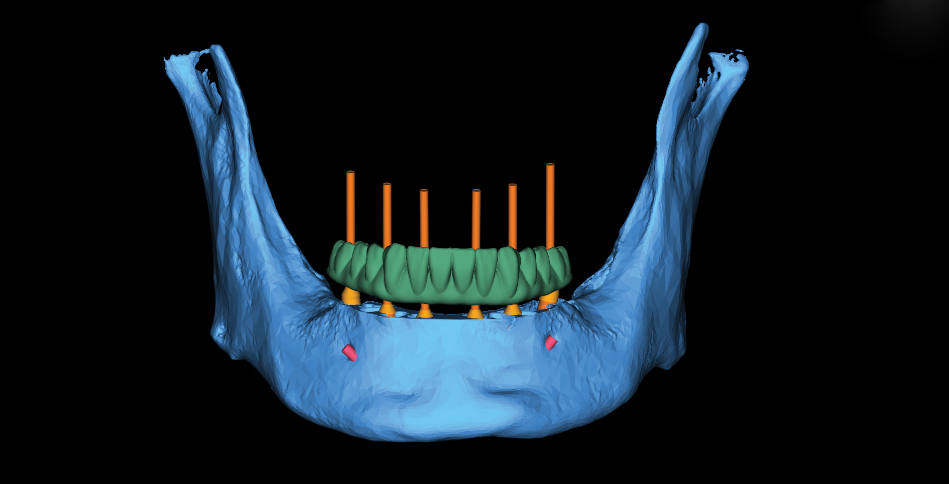 Since the introduction of the All-on-4 treatment concept, restorative teams have attempted to improve upon the procedure to increase accuracy, efficiency, and predictability. The immediate extractions (for a dentate arch), freehand bone reduction, and placement of the implants, along with the conversion of an immediate denture to accept the implant abutments, need to become more precise and predictable in order to reduce chairtime and increase convenience for the patient.