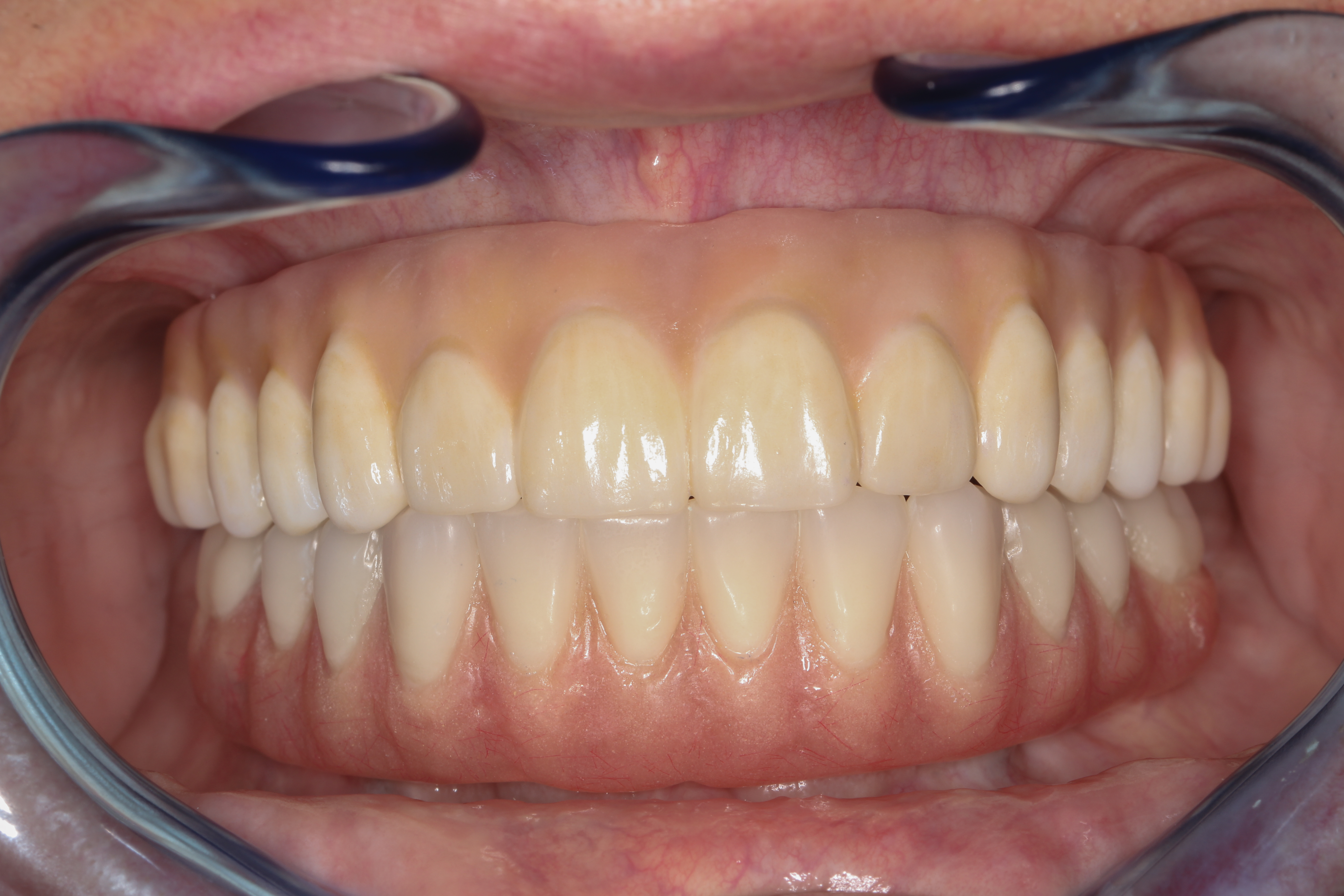 Final prosthesis delivery—The definitive prosthesis is delivered at this patient appointment. It can be made of milled zirconia or of denture teeth and acrylic on a milled titanium bar in addition to other prosthetic designs and materials as per the clinician’s preference.