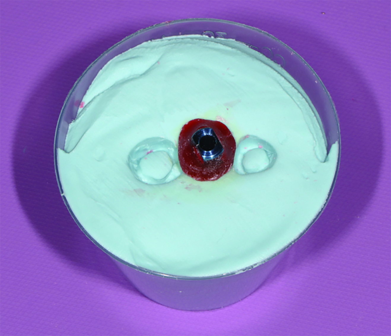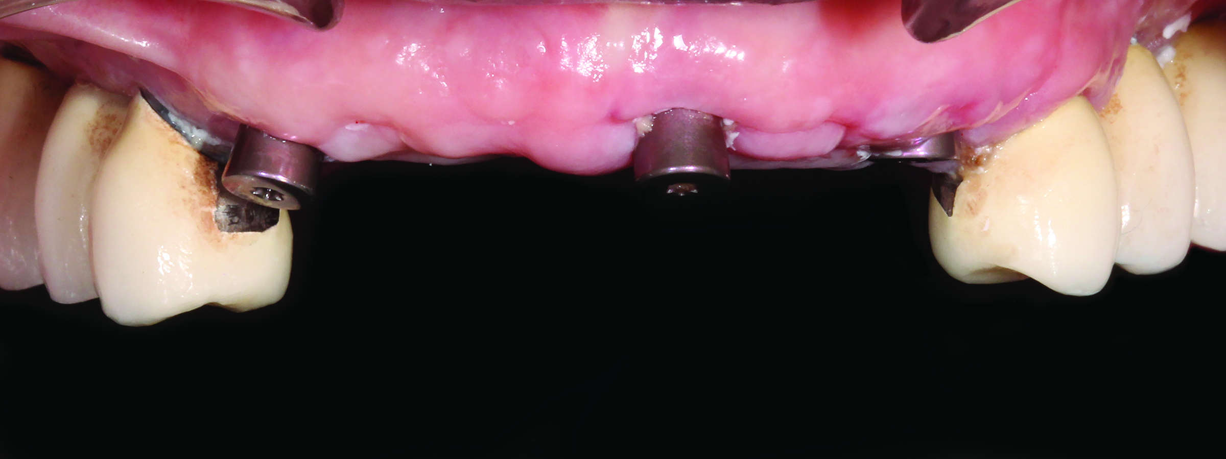 The clinical steps for a laboratory-fabricated provisional prosthesis include obtaining a fixture-level impression using open- or closed-tray impression techniques (Figure 7); obtaining an occlusal registration; obtaining an opposing impression; obtaining a facebow record if needed; and obtaining photos and a shade.6
