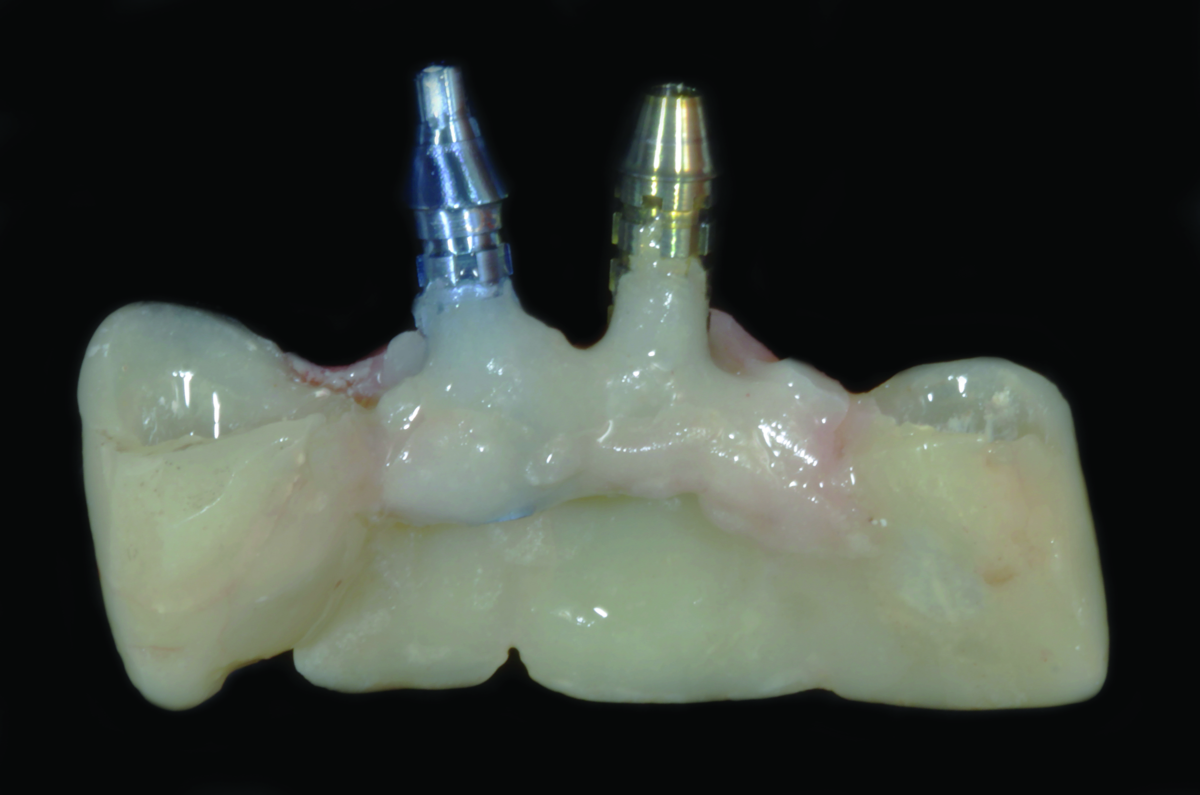 Use PMMA or flowable composite to attach the provisional shells to the provisional abutments (Figure 11). Before attaching, check position, esthetics, phonetics, and occlusion.