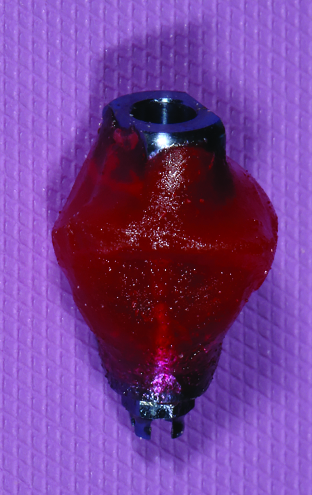 In order to overcome this obstacle, a provisional prosthesis or a customized healing abutment should be fabricated prior to making the definitive impression. The custom healing abutment may be made conventionally, using a screw-retained abutment and flowable composite resin7 or digitally milling a customized healing abutment.8,9