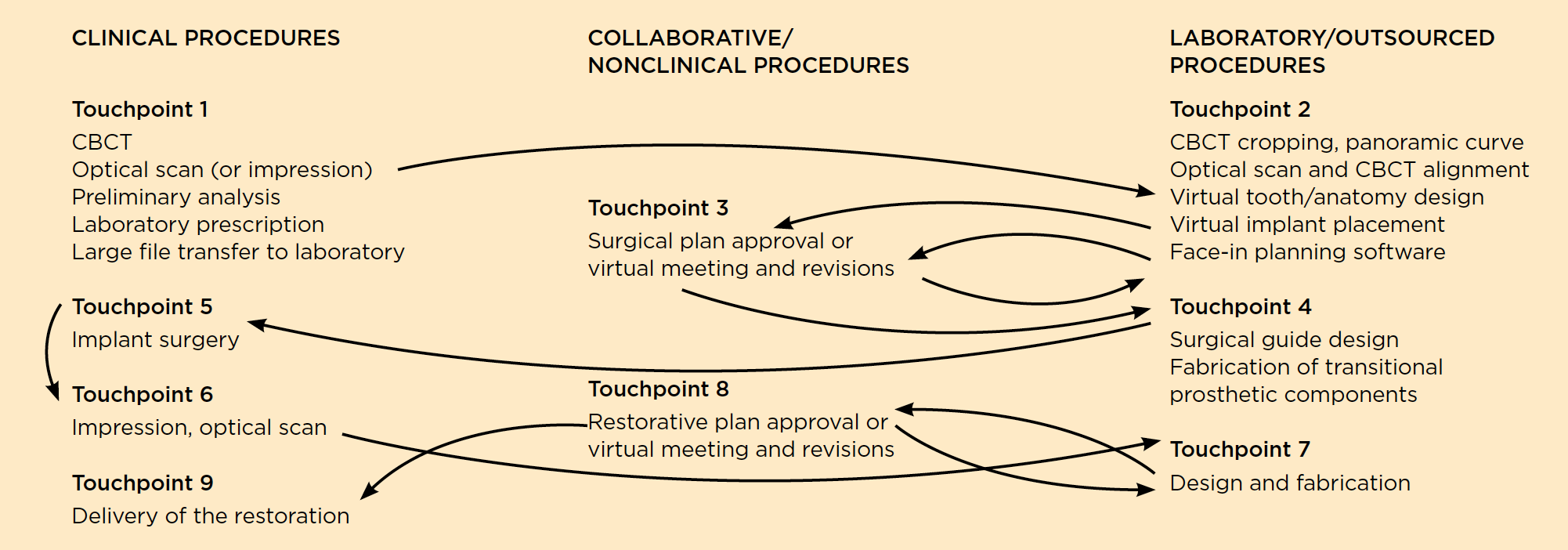 The authors' interpretation of and a step-by-step approach to the digital workflow for dentistry, referred to as "digital touchpoints," are outlined in the following sections.