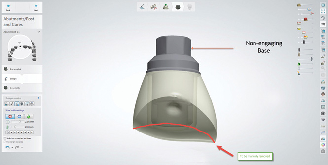 One of the biggest advantages of the digital workflow is being able to take the planning of the implant and transfer that data to the restorative software. This uses the planned position of the implant and allows the laboratory to fabricate provisionals or custom healing abutments before the surgery, saving the dentist chairtime and making the surgery less stressful. As the workflow improves and software interfaces become more open, it will make this part more predictable. At the moment, there is not one specific recognized workflow for all of the restorations, and the necessary workarounds can sometimes lead to inaccuracies. Any laboratory that pushes the capabilities of the current software should do this only with experienced dentists.