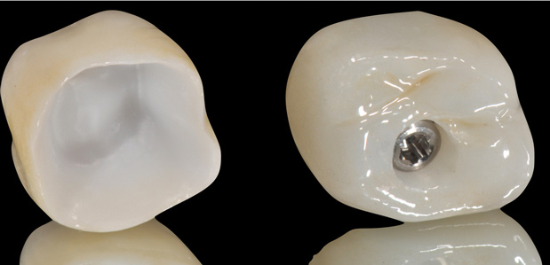Unfortunately, randomized clinical trials for fully digital workflows for either teeth or implant-supported fixed restorations are scarce. Presently, a strong offering of rapid prototyping procedures exists, including CAD/CAM-produced full-contour or monolithic crowns (Figure 23) and milled frameworks combined with CAD/CAM veneering superstructures. A true digital workflow for crown-and-bridge is not mainstage at present, and barely exists in an analog-digital blend, but the authors believe this will change soon. The layering of porcelain is cumbersome and operator dependent with many working parts and lacks the consistent precision found with today's computerized technology. Joda described a threefold improvement in time efficiency, and either no or minor adjustments of implant-supported crowns, using a digital workflow (intraoral scanning and CAD/CAM technology) in comparison to conventional methods.20 Laboratory time savings have been most impacted by the digital workflow (average 54.5 minutes of production time versus 132.5 minutes), along with a 30% overall treatment cost reduction.21