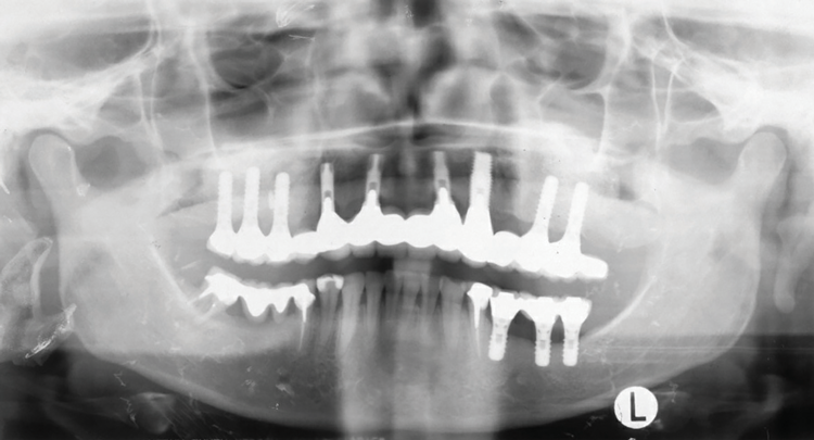 In 1998, a 57-year-old female patient presented to the Ashman Department of Periodontology and Implant Dentistry at New York University College of Dentistry (NYUCD) with the chief complaint of, "My teeth are mobile, and I don't want to wear anything removable in my mouth." Her medical history was unremarkable. She was a nonsmoker and nondrinker. Her past dental history included loss of several teeth due to periodontal disease and caries.