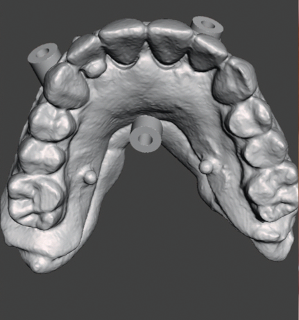 It is important to note that the existing provisional restorations can be used as a reference in a digital workflow. The provisional restoration needs to be constructed at the correct VDO and centric relation and satisfy the esthetic needs of the patient. Once the aforementioned data is sent to the laboratory, a verification jig can be made from printed models that represent the edentulous ridges and implant positions.