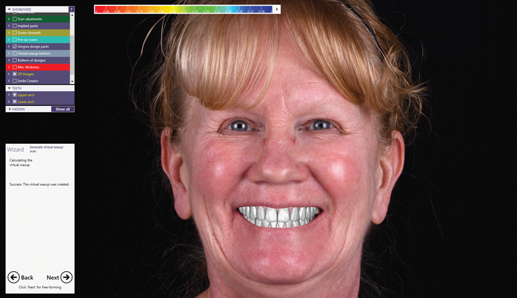 The existing provisional restorations and the edentulous ridges were scanned using an intraoral scanner. Implant positions were scanned using digital scan posts. Extraoral photographs of the patient were obtained. All of this data can then be merged together to create a digital patient (Figure 12).8,9
