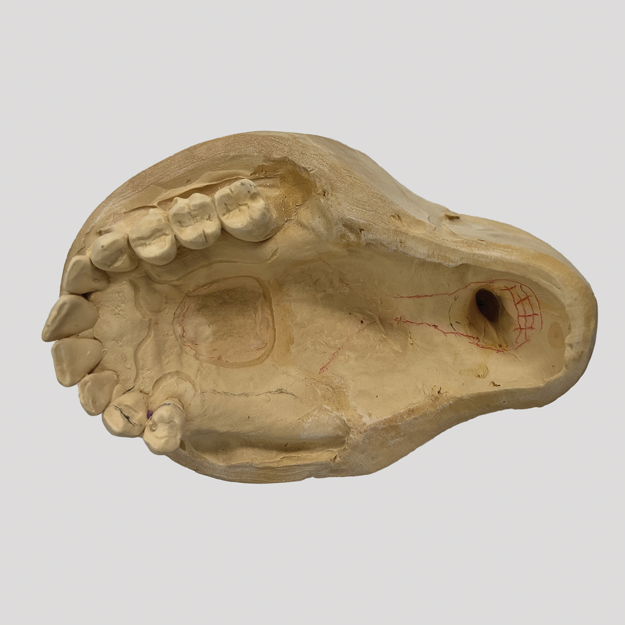 The final obturator should not be fabricated until the surgical site is healed and dimensionally stable, taking into consideration the patient's physical and emotional state.3 Changes associated with healing will continue to occur in the surrounding areas of the defect for at least 1 year.3 Dimensional changes are primarily related to the peripheral soft tissues.3